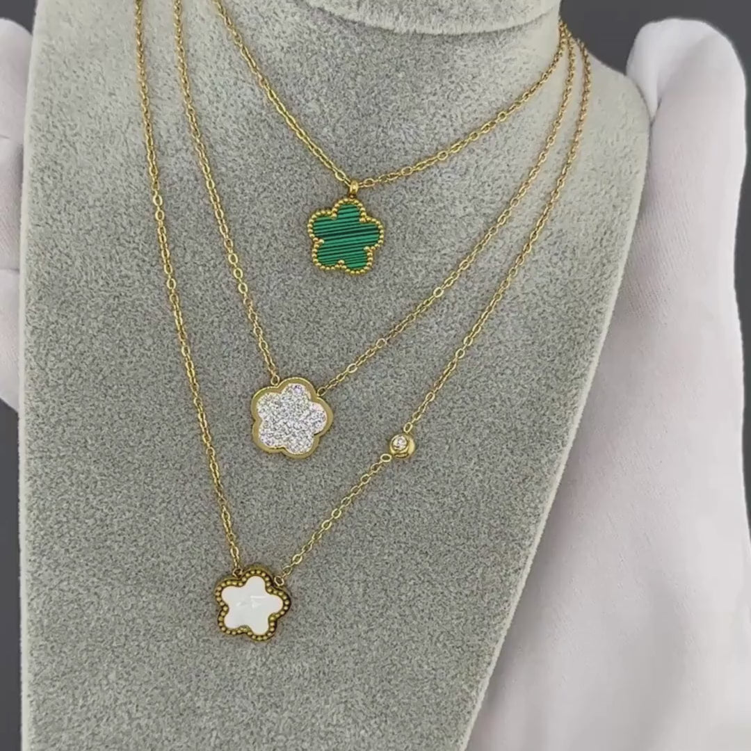 Green "Flowers" Necklace – 18K Gold-Plated Stainless Steel, Hypoallergenic, Waterproof, Tarnish-Free, 41+5 cm Adjustable, Lobster Claw Closure