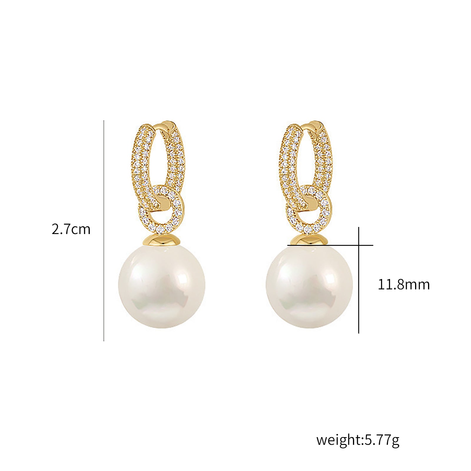 Retro Zircon Pearl Earrings Gold Plated Metal Jewelry for Women Casual Festive Party Banquet Ideal Holiday Gift
