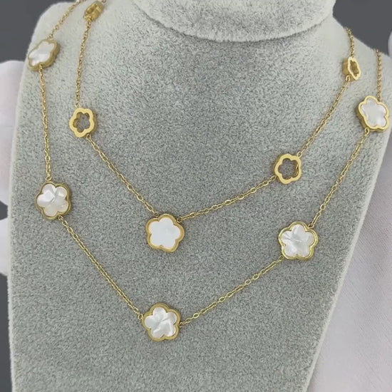 White "Flowers" Necklace – 18K Gold-Plated Stainless Steel, Hypoallergenic, Waterproof, Tarnish-Free, 41+5 cm Adjustable, Lobster Claw Closure